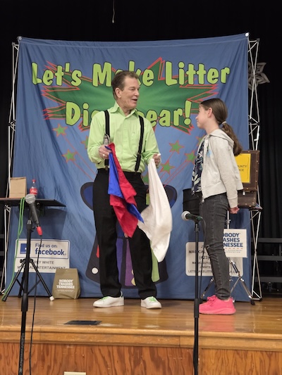 K-2nd grades + Dr. Lori Price's 4th grade recycle crews were treated to an anti-litter magic show by the Anderson County Mayor. Magician Jerry White made litter disappear. Date Thu, 01/22/2026 - 09:00 Locate 36.220106961631, -84.1519291